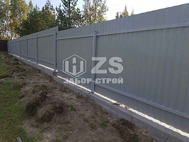- Забор на ленточном фундаменте из профнастила 6 соток