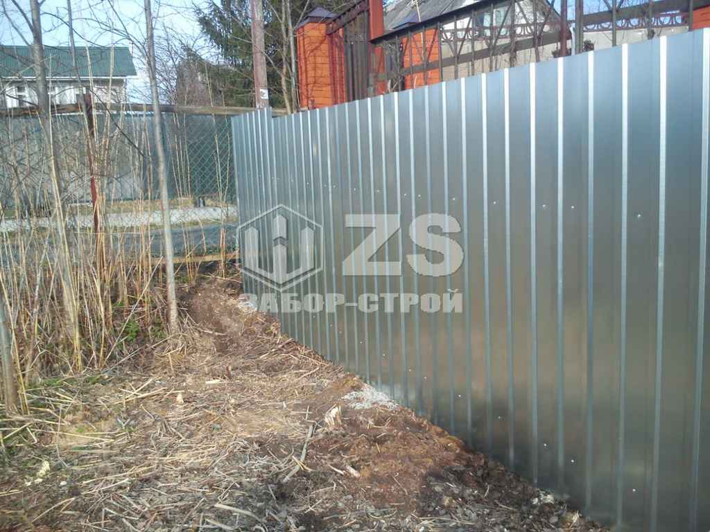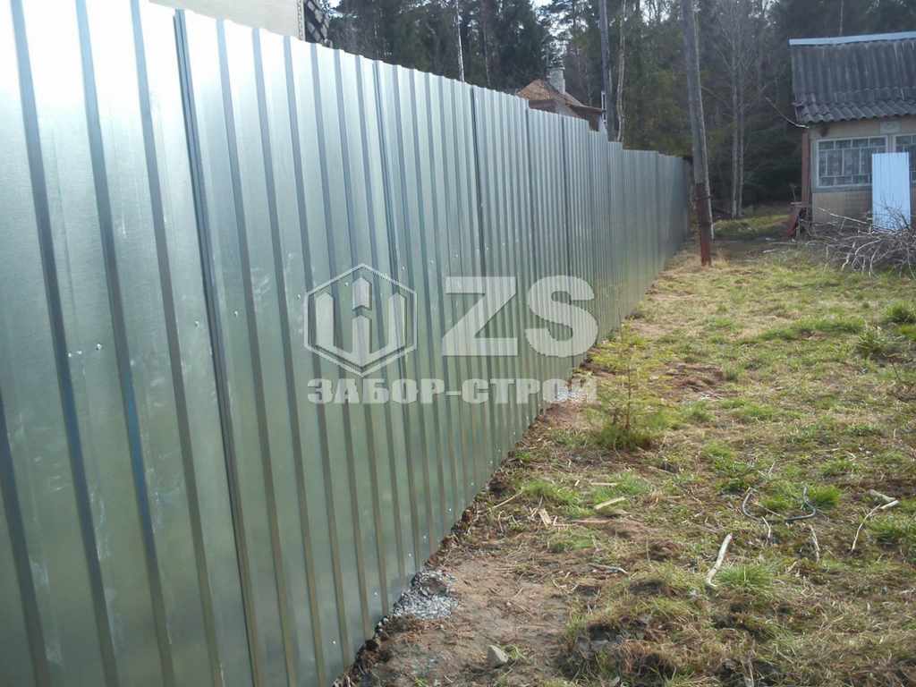 - Забор на столбах с утрамбовкой щебня из профнастила 45 метров